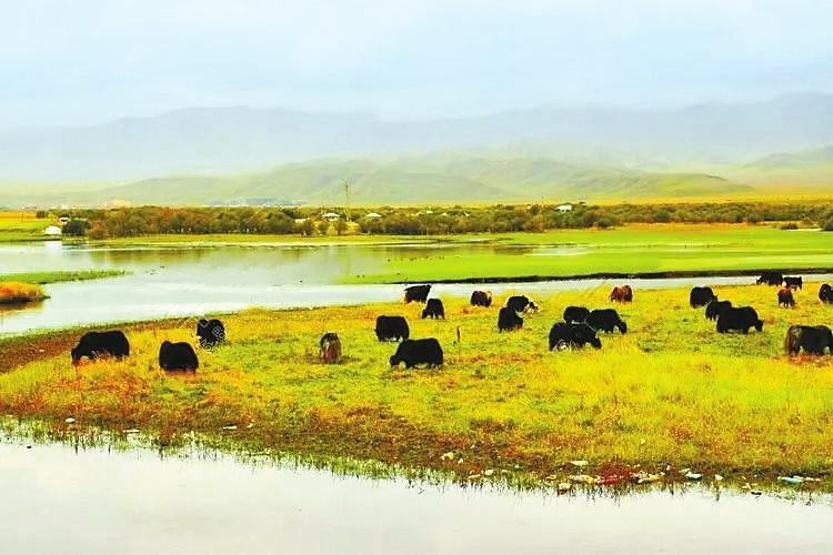 甘南的山、甘南的水,甘南的牛羊,構(gòu)成了一幅與城市工業(yè)化生活完全不同的畫面。因著海拔的緣故,就算陽光四起,甘南的遠(yuǎn)山上也都籠罩著一層青煙似的薄霧,這是中國(guó)畫的審美。人們偏愛云山霧海,偏愛影影綽綽的群山,要是群山之巔再有一些經(jīng)年不化的雪,那么此地就已經(jīng)擔(dān)得起一句“意境”了。