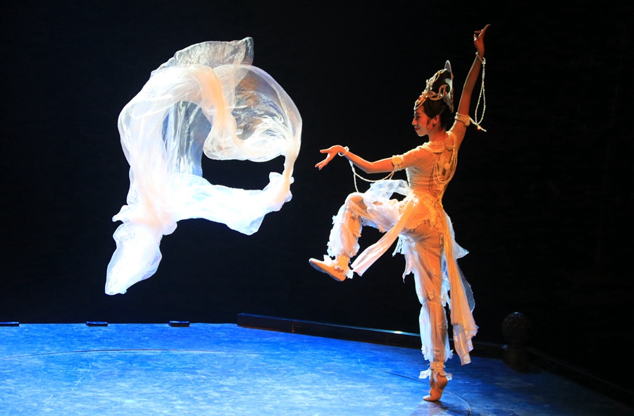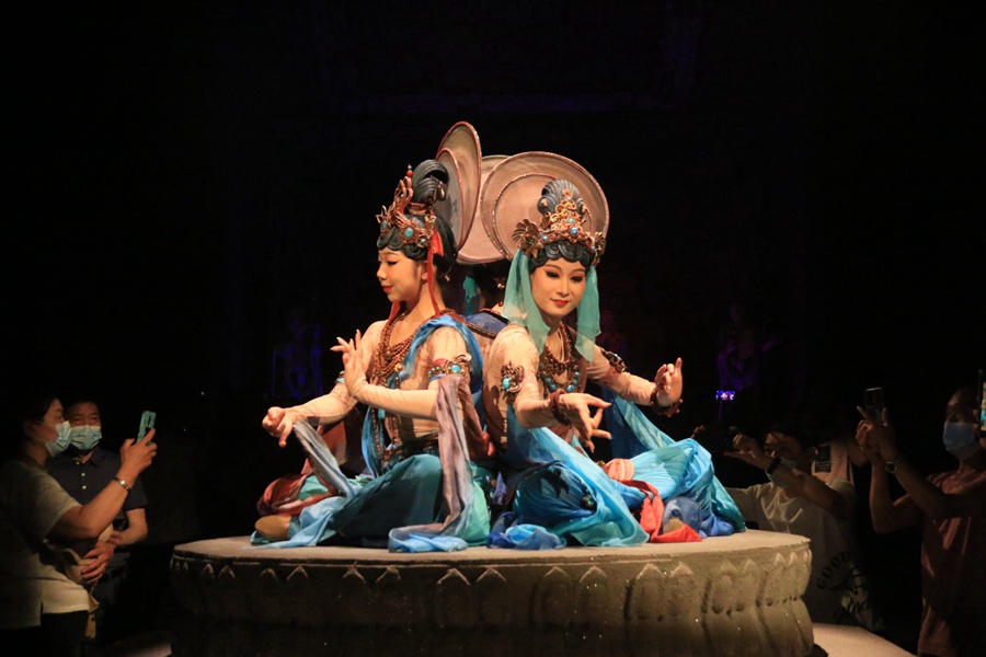 大型洞窟式沉浸體驗(yàn)劇《樂(lè)動(dòng)敦煌》演出現(xiàn)場(chǎng)。張曉亮攝
