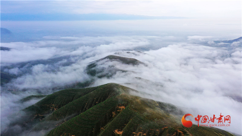經過連續(xù)幾天陰雨天氣,近日,榆中縣北山煙霧繚繞,群山間云霧蒸騰,仙氣飄飄,如夢如幻,宛若仙境,令人嘆為觀止。