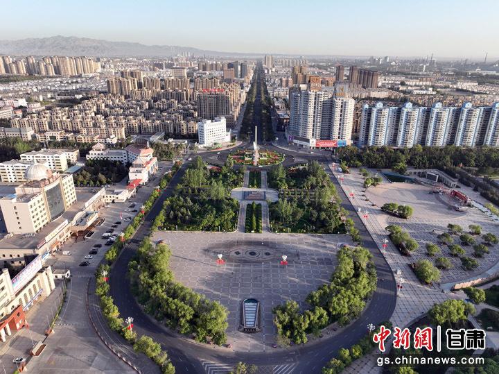 航拍嘉峪關(guān)市雄關(guān)廣場(chǎng)。 毛建軍 攝