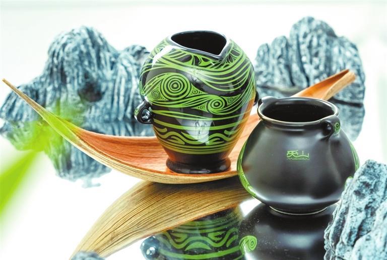 “馬家窯彩陶杯”的色彩設(shè)計(jì)也有創(chuàng)新之舉。李思成告訴記者:“為了能將古老神秘的彩陶紋樣與當(dāng)下年輕審美結(jié)合,決定選擇更貼近自然風(fēng)情的綠色線條,采用黑瓷,更能凸顯器皿的質(zhì)感。就這樣,既保留文化底蘊(yùn)的同時(shí),又賦予了它全新的質(zhì)感,在視覺上更具有沖擊力。”