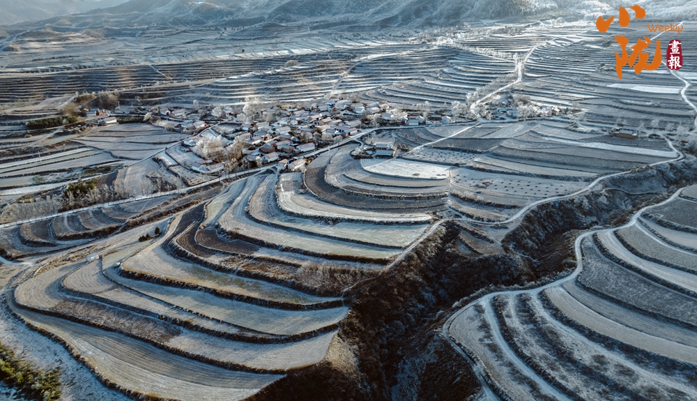 雪落千層入畫(huà)來(lái)。雪后初晴,被冬雪覆蓋的梯田,銀裝素裹,如大自然的素描,錯(cuò)落有致的線(xiàn)條,慢慢鋪展出一幅山村美景。