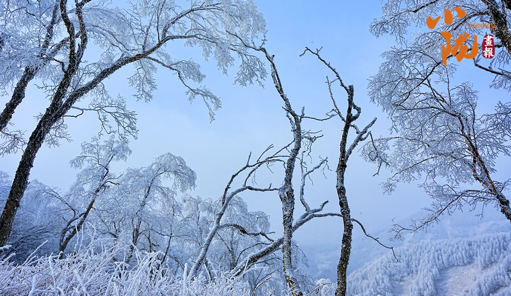 走進(jìn)關(guān)山,看到的是一個(gè)神話(huà)般的雪韻凇情美景,霧凇結(jié)在樹(shù)上,亮晶晶的猶如一根根銀條,浪漫唯美,別有韻味。