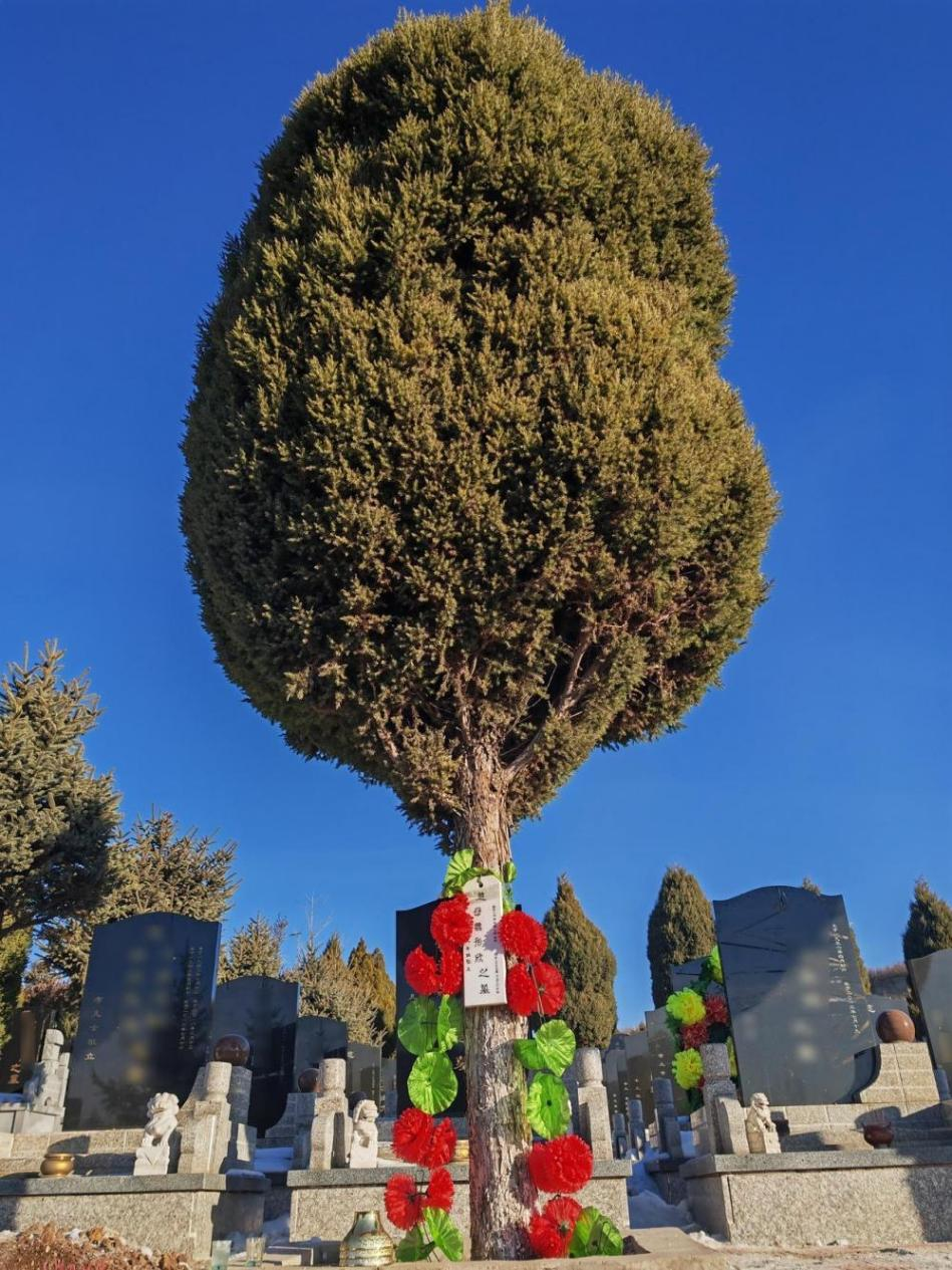 遼寧阜新市公墓的東南角,一棵挺拔翠綠的柏樹樹干上,掛有一個長30厘米、寬10厘米的小木牌,上寫有“魏彤欣之墓”,一束花環(huán)環(huán)繞周圍,在陽光的照耀下格外絢麗。