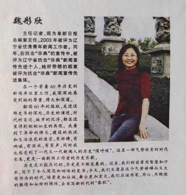 魏彤欣在阜新日報創(chuàng)刊60周年發(fā)表的感言。