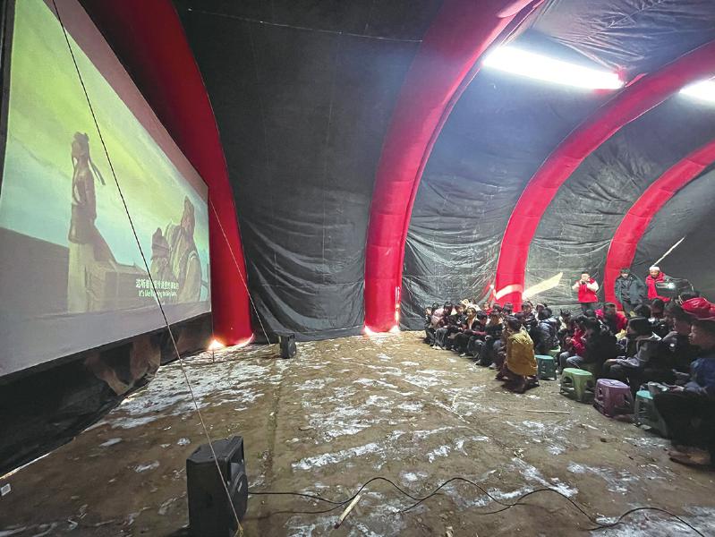 冬日的嚴(yán)寒擋不住震區(qū)群眾的觀影熱情。帳篷內(nèi),電影《英雄若蘭》《新神榜:楊戩》先后放映,孩子們分排而坐,被影片生動(dòng)有趣、跌宕起伏的情節(jié)深深吸引,不時(shí)傳出歡聲笑語。“志愿者給我們放電影,豐富了我們的文化生活。”正在觀影的村民呂鵬說。