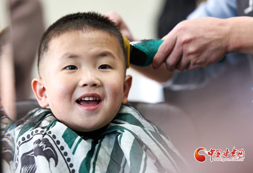 3月11日,在臨夏市一理發(fā)店內(nèi),理發(fā)師正在為一名小朋友“剃龍頭”。當(dāng)日,是農(nóng)歷二月初二,許多家長(zhǎng)帶著孩子到理發(fā)店理發(fā),希望孩子能健康成長(zhǎng),日后出人頭地,為新的一年討個(gè)好彩頭。