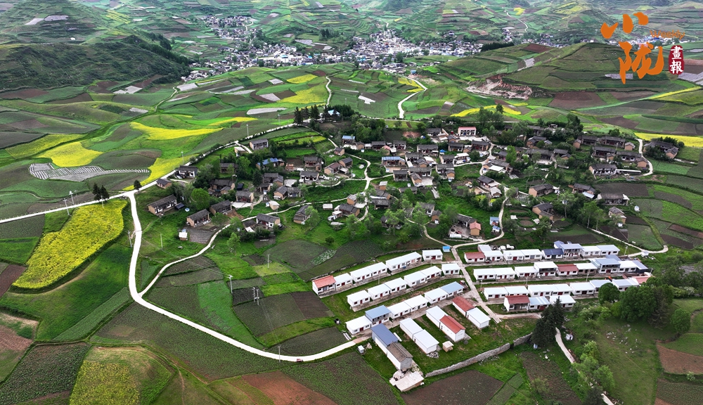 從空中俯瞰,阡陌縱橫與遠(yuǎn)處連綿起伏的青山,錯(cuò)落有致的民居交相呼應(yīng),勾勒出一幅美麗的“田園畫卷”。
