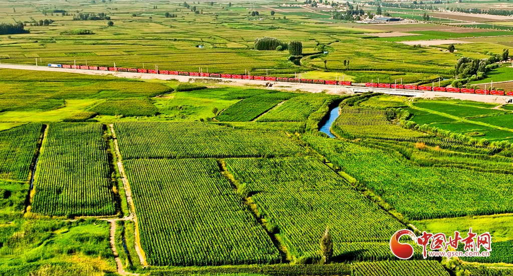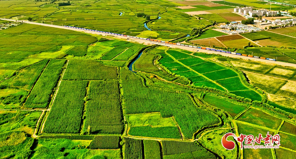 盛夏時(shí)節(jié),位于祁連山下的甘肅省張掖市甘州區(qū)烏江鎮(zhèn)萬畝即將收獲的制種玉米生長(zhǎng)旺盛,宛若鋪了一層綠色的“巨毯”。綠油油的供港蔬菜基地上,種植農(nóng)戶們正忙碌采摘。田間林木,穿境而過的蘭新鐵路大動(dòng)脈和S237(蒙甘--青海)一級(jí)公路上,一列列火車、一輛輛汽車疾馳,勾勒出一幅幅美麗的田園生態(tài)畫卷。