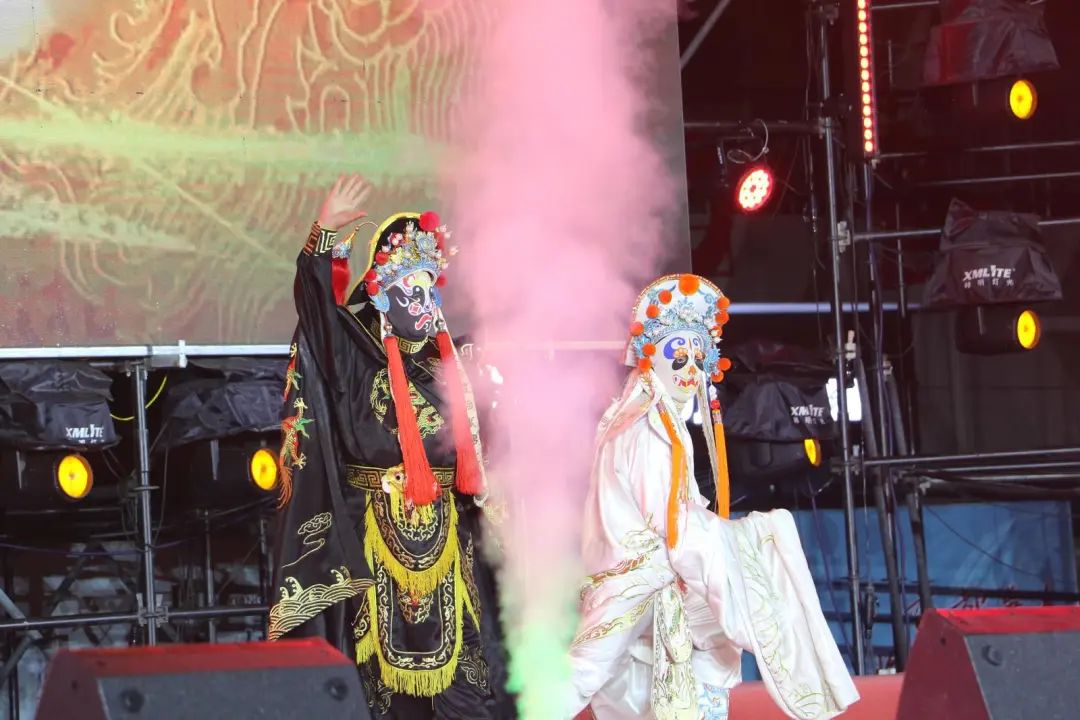 月影西斜,華燈初上。非遺花兒《上去高山望平川》音樂(lè)高亢、悠長(zhǎng)、爽朗,情感真摯,讓觀眾領(lǐng)略到了鮮明的民族風(fēng)格、地方特色及其獨(dú)特魅力;猴王表演《金猴送福》加入了戲劇化妝、戲劇技巧等表演手段,將祝福送給每一位觀眾;《板胡五重奏》豪放跌宕,清麗委婉,舒展愜意,優(yōu)美動(dòng)人的旋律引得觀眾一次次陶醉、回味無(wú)窮……