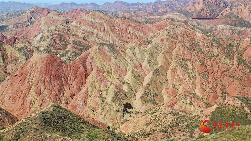時值盛夏,水墨丹霞山體頂部草木淡雅點綴更有名畫意境,水墨丹青版的蘭州丹霞值得游客期待。
