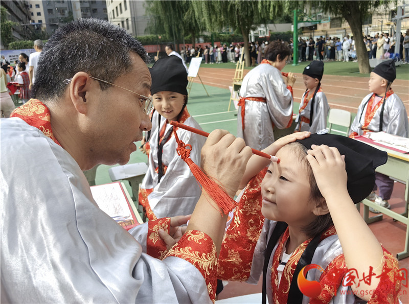 據(jù)介紹,七里河小學(xué)開筆禮服裝均由學(xué)校提供,每年使用后清洗保存,學(xué)生不用租借禮服。學(xué)校將開筆禮的儀式一年年傳承下來,希望同學(xué)們可以接受到傳統(tǒng)文化,從寫人字入手,感受人字帶來的人生哲理,開啟新的學(xué)習(xí)生涯。同時(shí),開筆禮中的端正衣冠、朱砂啟智、擊鼓鳴志等都是傳承千年的入學(xué)禮儀,是孩子們了解中華傳統(tǒng)文化的一個(gè)窗口。