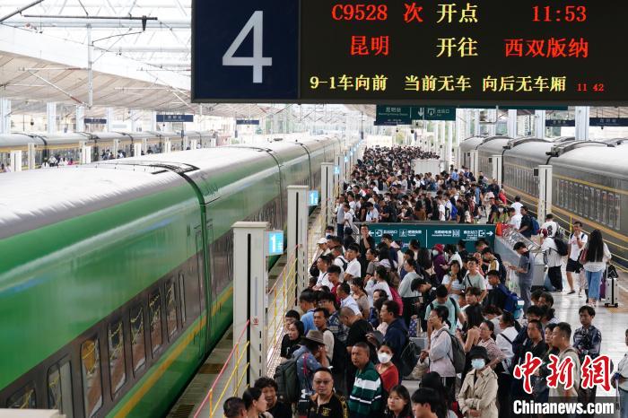 8月31日,云南昆明,旅客在昆明站候車前往西雙版納方向。當日,為期62天的中國鐵路暑運結(jié)束。中新社記者 劉冉陽 攝