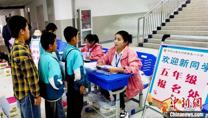1日,積石山縣大河家鎮(zhèn)五一小學(xué)開學(xué)。該校是新建學(xué)校,圖為開學(xué)報(bào)名現(xiàn)場。滕漢霞 攝