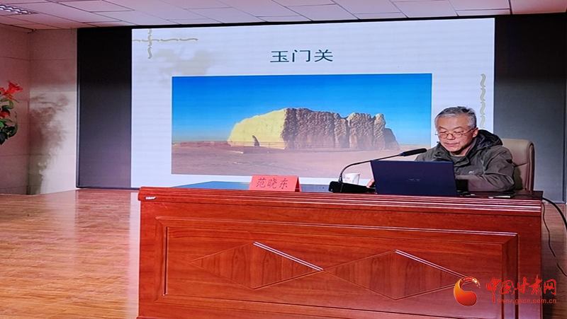 酒泉市肅州區(qū)博物館范曉東研究員以《何以酒泉-文物中的酒泉故事》為題,立足肅州區(qū)文博歷史,向與會(huì)師生介紹了古代絲綢之路、河西走廊歷史文化變遷、重要考古發(fā)現(xiàn)等,鼓勵(lì)同學(xué)們努力學(xué)習(xí),深入了解中華優(yōu)秀傳統(tǒng)文化,堅(jiān)定文化自信,將來為建設(shè)家鄉(xiāng)貢獻(xiàn)力量。