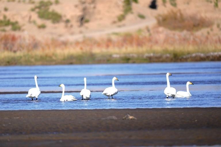 近日,高臺(tái)縣黑河濕地多次監(jiān)測到大天鵝種群,它們的翩翩降臨,標(biāo)志著天鵝一年一度的越冬之旅正式開啟。 大天鵝是雁形目鴨科天鵝屬鳥類,又稱黃嘴天鵝,全身潔白,僅頭稍沾棕黃色;喙黑色,上喙基部黃色,喙端黑色;跗跖、蹼、爪也為黑色,是國家二級(jí)保護(hù)動(dòng)物。天鵝對(duì)棲息地的選擇極為苛刻,它們的到來是高臺(tái)縣黑河濕地生態(tài)環(huán)境質(zhì)量優(yōu)良的有力證明。