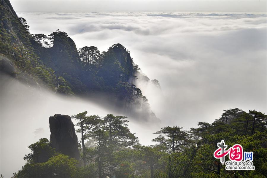 每年11月是黃山瀑布云頻頻出現(xiàn)的季節(jié),經(jīng)過前日的降雨和降溫,連續(xù)多天都出現(xiàn)了氣勢(shì)磅礴的“瀑布云”景觀。
