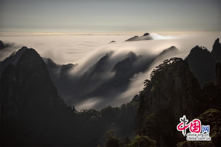 只有一個(gè)黃山:最美“瀑布云”凌空而下