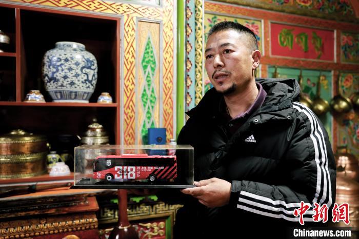 12月22日,藏文書(shū)法家昂旺曲批展示收藏的車(chē)模型。中新社記者 薛蒂 攝