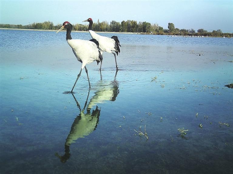 原標題:黑頸鶴漫步甘肅雙塔濕地