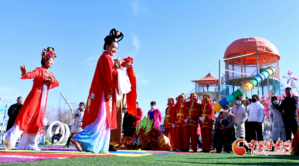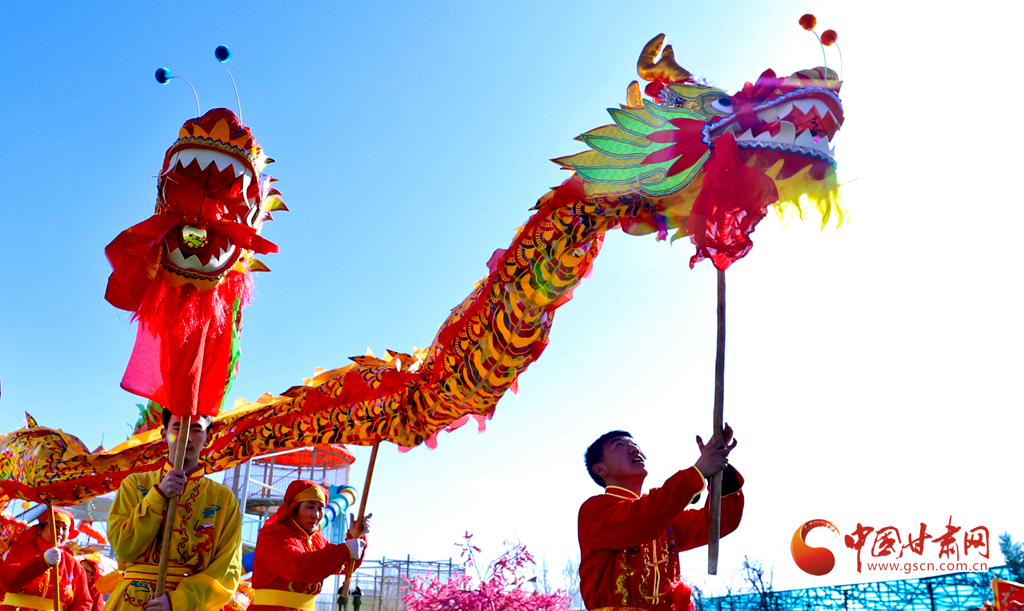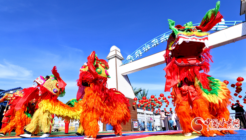 春節(jié)期間,甘肅省張掖市甘州區(qū)一游樂園內熱鬧非凡,張掖云海民俗文化藝術團的演員們舞起祥龍雄獅、敲起威風鑼鼓,讓市民和游客在傳統民俗文化的氛圍中歡度春節(jié)假期。