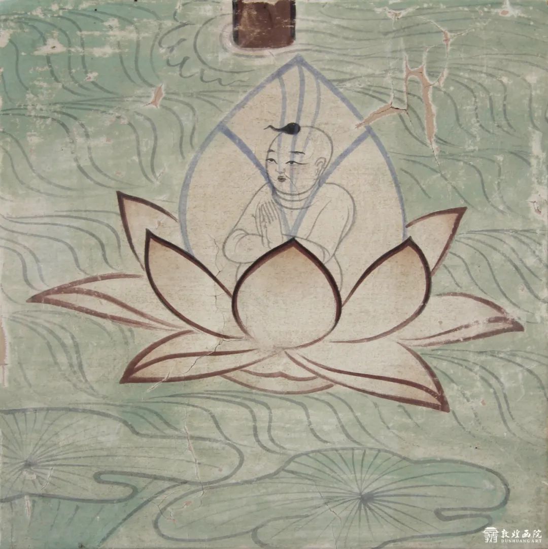 這幅臨摹于榆林窟25窟的化生童子雙手合十,外面蓮花瓣層層盛開,透過透明的花苞可以看到童子即將降生,生動(dòng)可愛,和電影中的情節(jié)遙相呼應(yīng)。