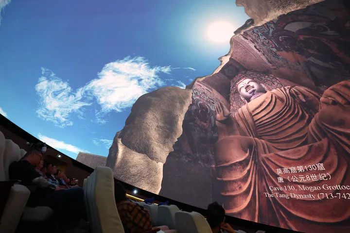 2024年9月4日,游客在莫高窟數(shù)字展示中心觀看球幕電影《夢幻佛宮》。新華社記者 陳斌 攝