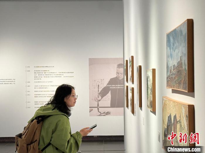 天行健——梁江“學(xué)者書(shū)畫(huà)”50年廣州展16日在廣東美術(shù)館開(kāi)幕。方偉彬 攝