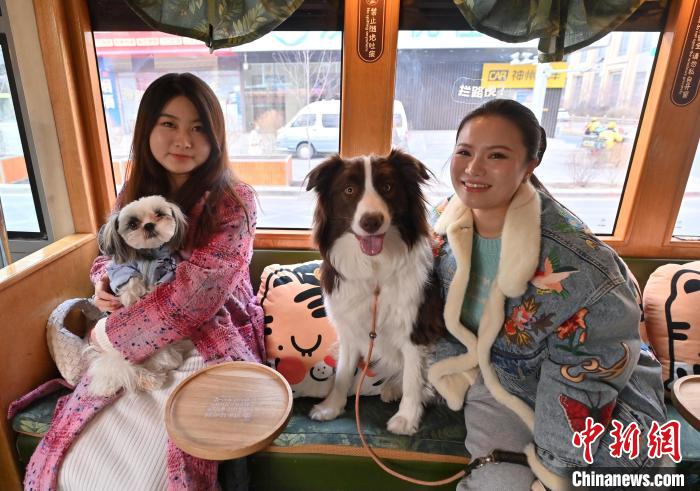 3月16日,吉林長春,寵物和主人在車廂拍照留念。中新社記者 張瑤 攝