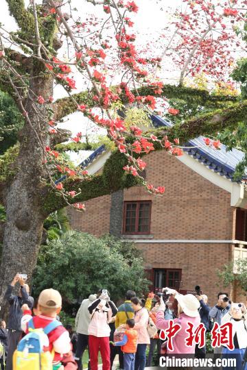 眼下,一株被譽為“中國最美木棉”的超350歲木棉樹以及周邊幾株木棉樹進入盛花期,璀璨的紅棉在中山紀念堂藍瓦朱檐的映襯下,共同構成了一道美麗的風景線,吸引眾多市民和游客駐足“打卡”。不少攝影愛好者還架起專業(yè)設備捕捉盛景,定格與木棉花的春日邂逅。