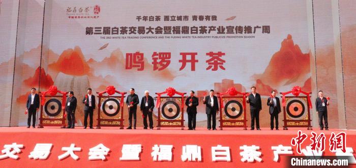 鳴鑼“開(kāi)茶開(kāi)市”,開(kāi)啟第三屆白茶交易大會(huì)暨福鼎白茶產(chǎn)業(yè)宣傳推廣周序幕?!×珠派?nbsp;攝