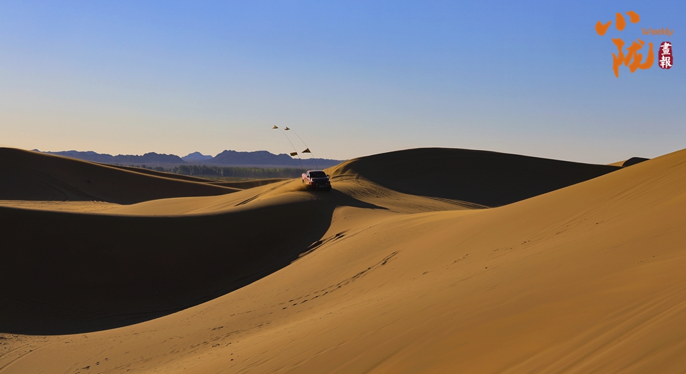 夕陽(yáng)西下,極目遠(yuǎn)眺,在余暉照耀下,連綿起伏的沙丘似金色的海浪,一波接著一波,涌向天際。那細(xì)膩的沙紋,在陽(yáng)光的輕撫下,宛如歲月鐫刻的痕跡,每一道褶皺都藏著故事。