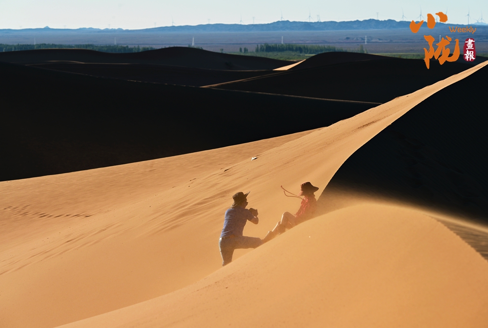 春日,連綿起伏的臨澤縣金沙灣沙漠,沙粒在陽(yáng)光的照耀下閃爍著金色的光芒,猶如一片金色的海洋。
