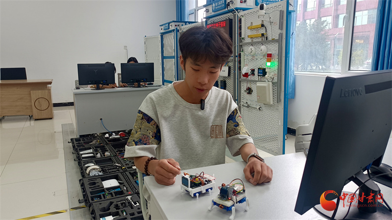 培黎職業(yè)學院信息技術學院學生唐俊杰和他的創(chuàng)新團隊最近組裝了兩只機器狗,通過語音遙控可以實現指令輸出,達到陪伴、互動的目的。唐俊杰說,“手腦并用、創(chuàng)造分析”鼓勵他們要理論聯系實際,以動手能力讓圖紙變成現實,機器狗是他們的在實踐課程中不斷創(chuàng)新探索而來。