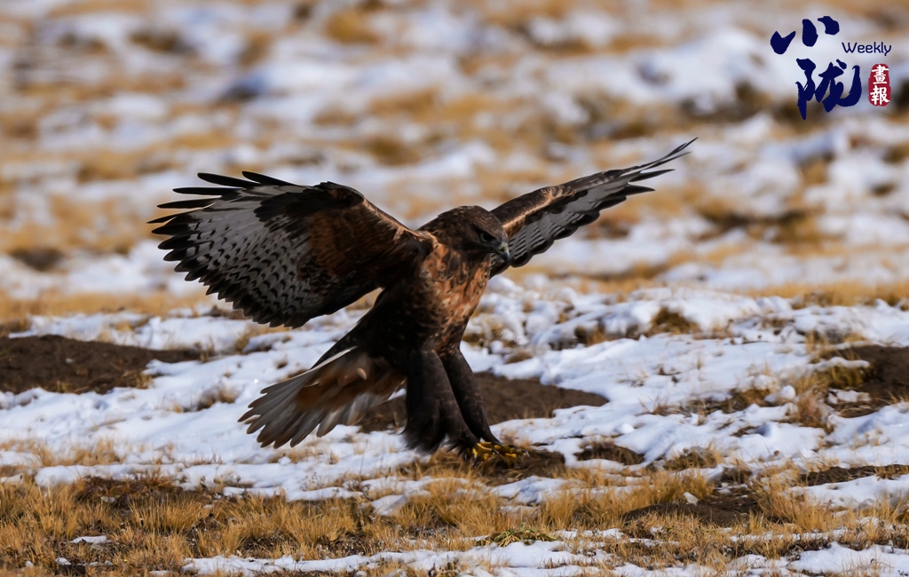 草原雕是國家一級重點(diǎn)保護(hù)野生動物,別名草原鷹。外貌兇悍、體形碩大的黃棕色雕,不同年齡階段及不同個體之間體色差異較大。喙灰色,腳黃色。飛行時兩翼平直,展開長度可達(dá)200cm,滑翔時兩翼略彎曲,尾有時呈形。由于張掖境內(nèi)生態(tài)環(huán)境持續(xù)改善,草原雕已逐漸成為肅南的越冬候鳥,每年11月底到次年4月初,在肅南濕地就能見到它的身影。
