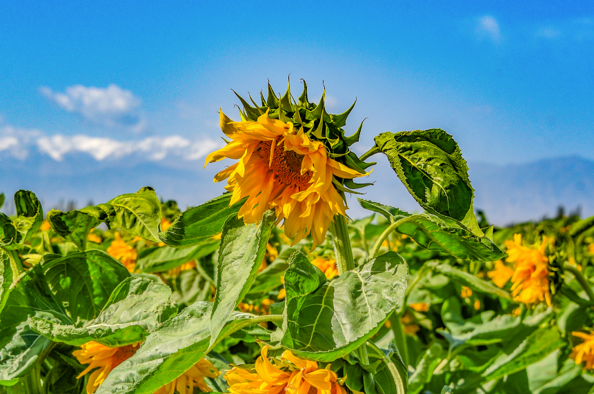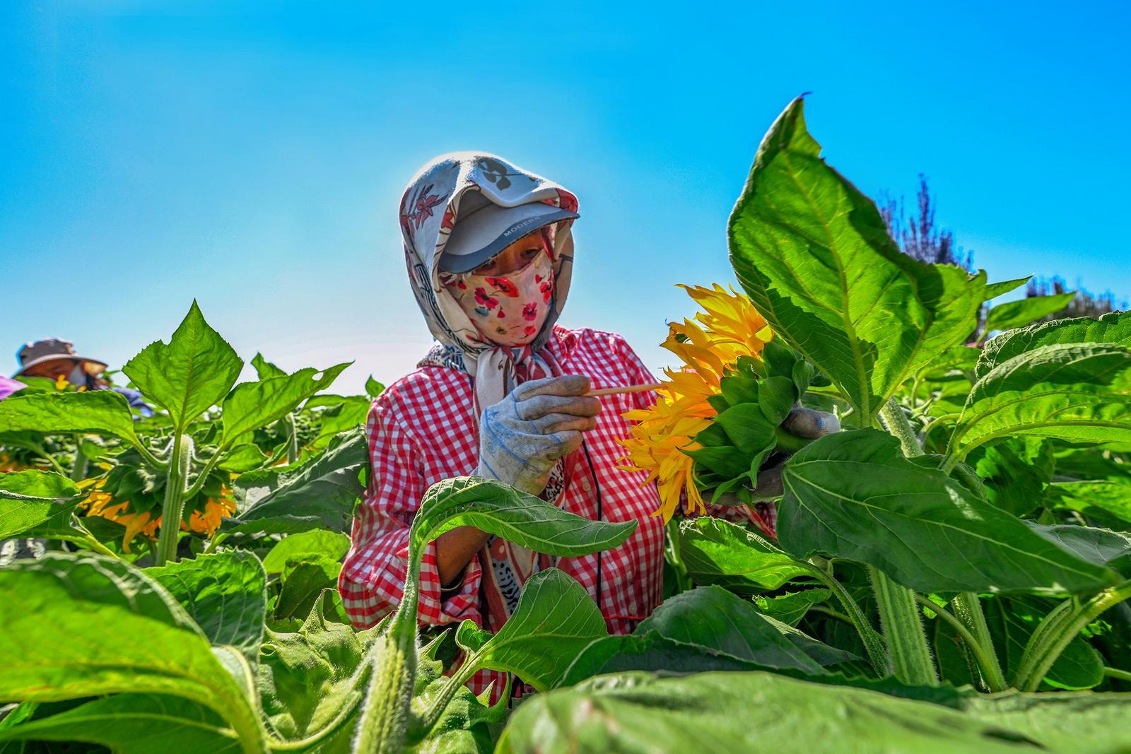 中國(guó)甘肅網(wǎng)7月14日訊 據(jù)嘉峪關(guān)日?qǐng)?bào)報(bào)道(融媒體中心記者 李巍 攝)近日,嘉峪關(guān)市新城鎮(zhèn)野麻灣村“千畝”制種向日葵迎來(lái)盛花期,朵朵花盤匯聚成金色花海,放眼望去,與雪山相融、與藍(lán)天相接,如詩(shī)如畫(huà),美不勝收。