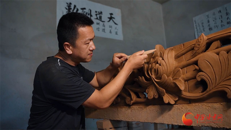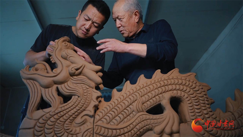 陽(yáng)光透過(guò)灰瓦間隙,照亮作坊里的磚雕:龍游天際、鳳銜寶珠、麒麟踏云、吻獸吞脊——這些曾盤踞在故宮太和殿的祥獸,如今在西北山村的窯洞里,被邸家人的雙手復(fù)刻重生。