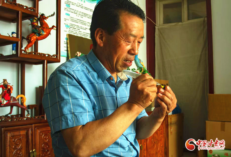 為捕捉動(dòng)態(tài)美感,他常觀察動(dòng)物神態(tài),甚至將蛐蛐養(yǎng)在瓶中細(xì)細(xì)揣摩。他還把河西走廊的地域文化融入創(chuàng)作,從《河西寶卷》中汲取題材,用面塑展現(xiàn)地方特色和歷史故事。